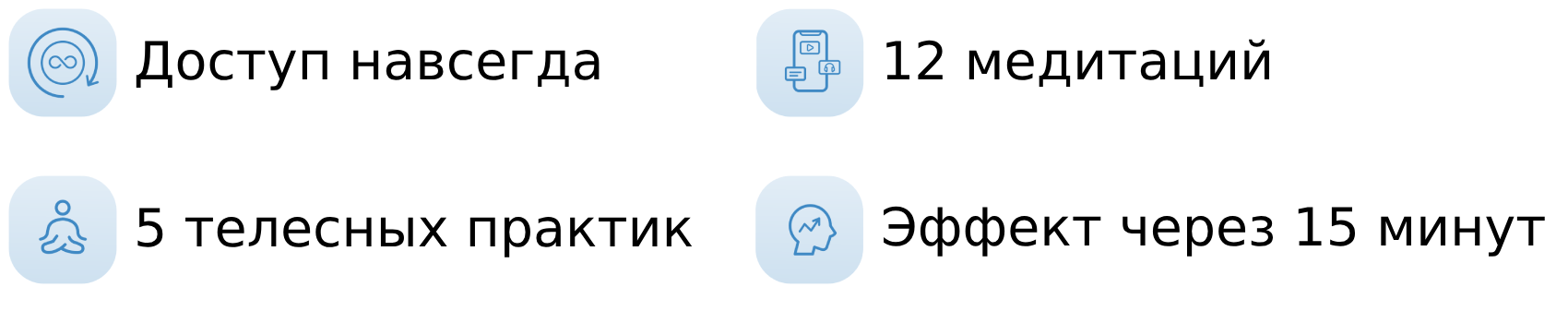 Скидки действительны только ограниченное время. Остальные курсы можно приобрести непосредственно в приложении Mindspa по обычным ценам.